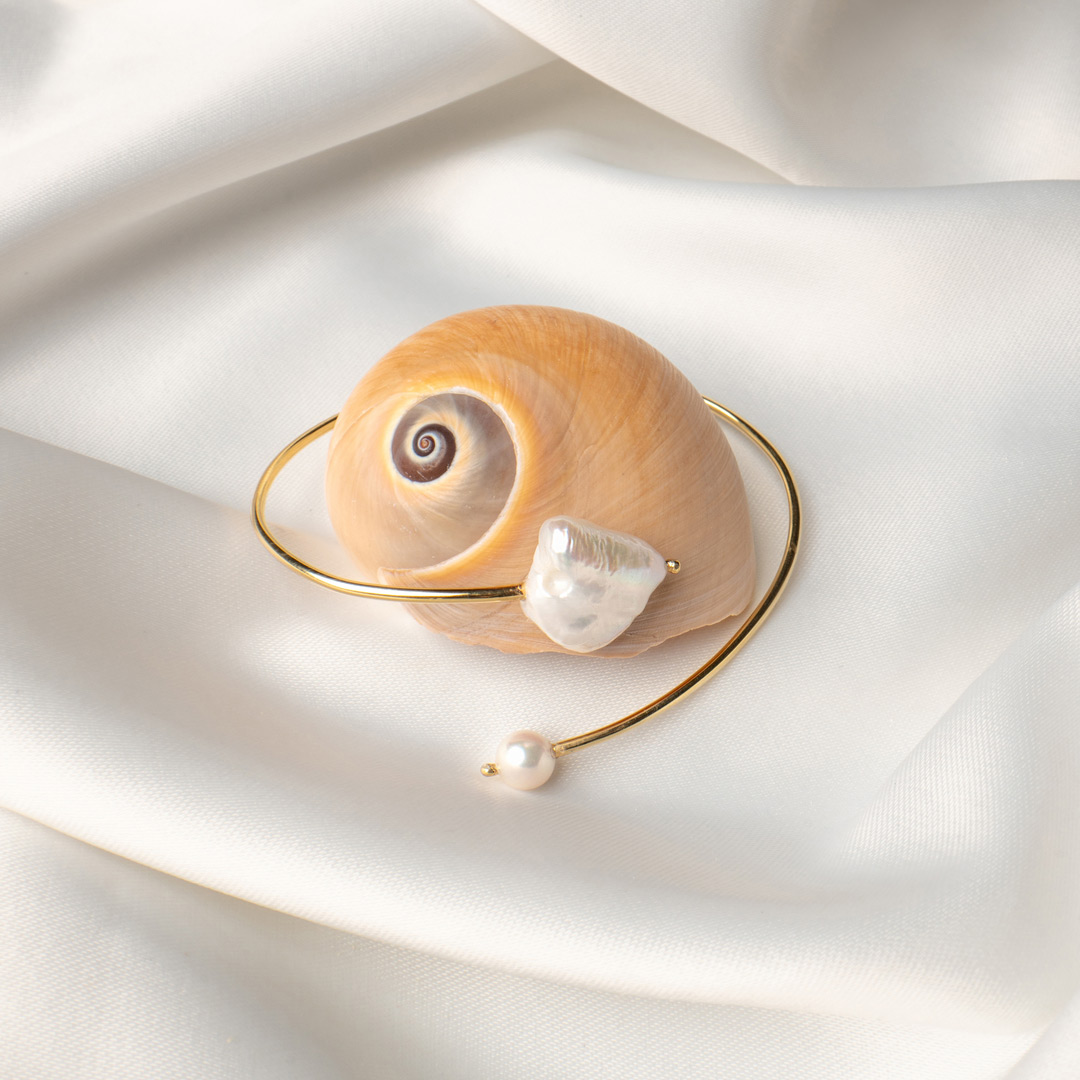 Narukvica Radiante iz kolekcije Pearls like Fé sa baroknim i prirodnim biserom.